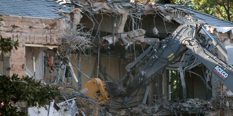 Imagens divulgadas pelo Washington Post mostram uma retroescavadora no trabalho de destruição das paredes e janelas da Ala Leste, enquanto a remoção de árvores e outras preparações para a construção começaram desde setembro. O presidente republicano, Donald Trump, destacou em um jantar recente que o novo salão de baile terá uma capacidade para 999 pessoas e recebeu promessas de 250 milhões de dólares em doações de empresários ricos para financiar a obra.