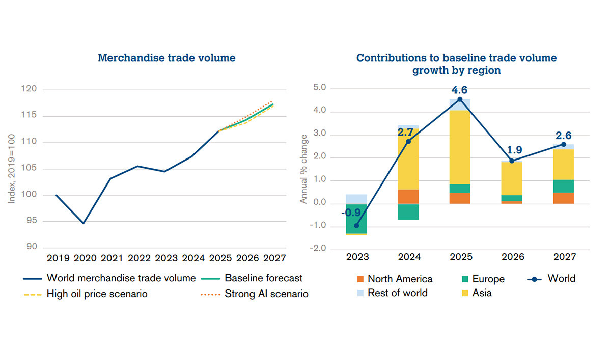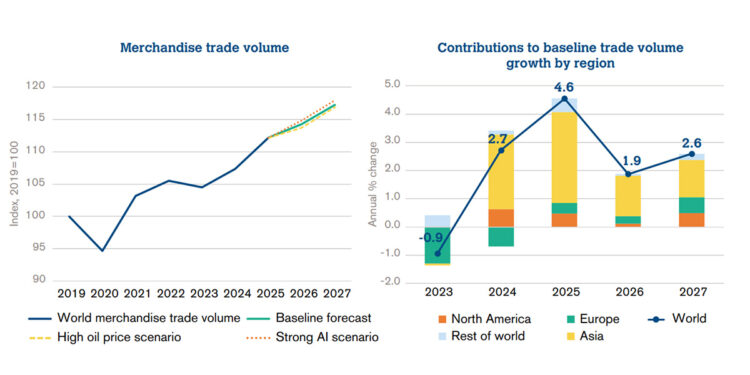 Os economistas da Organização Mundial do Comércio (OMC) preveem que o comércio mundial deverá desacelerar em 2026, após um crescimento mais robusto do que o esperado em 2025, impulsionado pelo aumento da demanda por produtos habilitados para inteligência artificial (IA). No entanto, eles alertam que o conflito em curso no Oriente Médio pode impactar negativamente essa trajetória, especialmente se os preços da energia permanecerem elevados. Essa situação não apenas afetaria o crescimento do comércio, mas também pressionaria o fornecimento de alimentos e os serviços comerciais, em razão das interrupções no transporte e na mobilidade.