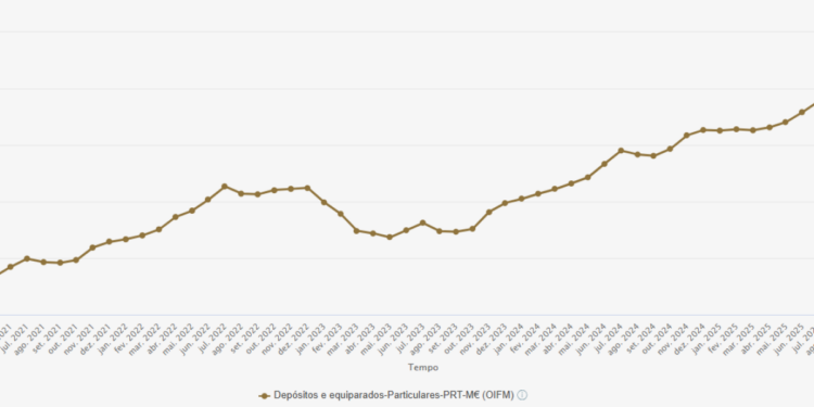 No final de janeiro de 2026, os depósitos de particulares nos bancos residentes em Portugal totalizaram 200,7 mil milhões de euros, segundo o último relatório do Banco de Portugal (BdP), divulgado em 26 de fevereiro. Este valor representa uma ligeira diminuição em relação ao mês anterior, quando os depósitos somavam 200,715.2 milhões de euros, mas é superior ao montante apurado no mesmo período do ano anterior, evidenciando uma recuperação em termos anuais.