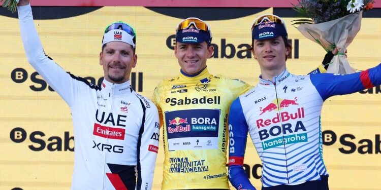 O ciclista português João Almeida, da equipa UAE Emirates, alcançou mais uma vez a segunda posição na Volta à Comunidade Valenciana, repetindo o resultado do ano passado. A competição, que termina neste fim de semana, viu o belga Remco Evenepoel, da Red Bull-BORA-hansgrohe, triunfar, consolidando sua liderança nas etapas. Almeida, conhecido pelo seu desempenho consistente, mostrou um bom nível de forma, principalmente nas subidas, mas não conseguiu superar Evenepoel, que demonstrou grande força ao longo da prova.