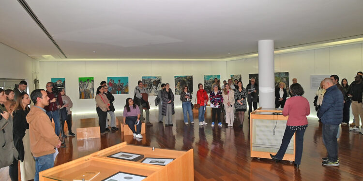 A Biblioteca da Universidade de Trás-os-Montes e Alto Douro (UTAD) inaugurou ontem a exposição de pintura “Memória: Pura Serra”, de Carlos Ortega, um artista colombiano que atualmente é estudante de doutoramento na instituição. A mostra apresenta uma coleção de obras que mergulham em temas relacionados à produção animal e às mudanças culturais e ambientais que ocorrem devido a essa prática, além de explorar a vulnerabilidade humana.