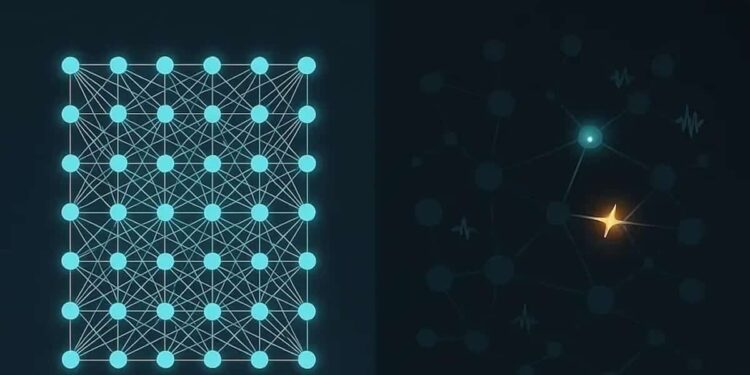 O SpikingBrain-1.0 utiliza redes neuronais de picos (SNNs), que se inspiram na forma como o cérebro humano funciona. Diferente dos modelos tradicionais que usam transformers, as SNNs disparam pulsos discretos e não possuem ativações contínuas. Isso resulta em uma maior eficiência energética e velocidade de processamento, permitindo que o modelo processe sequências de até 4 milhões de tokens, um aumento significativo em relação aos 128 mil a 1 milhão de tokens disponíveis nos modelos convencionais.